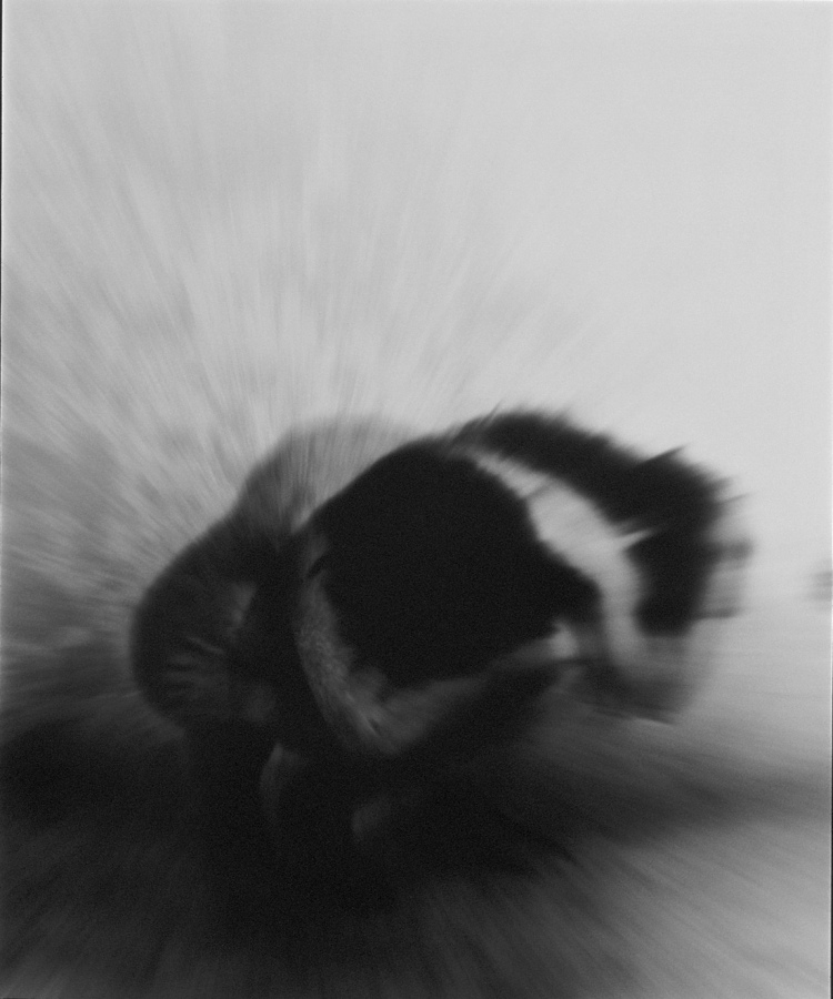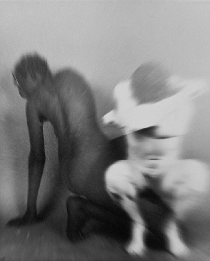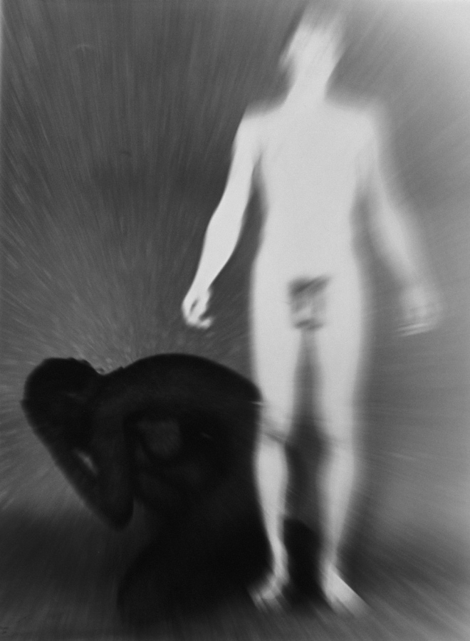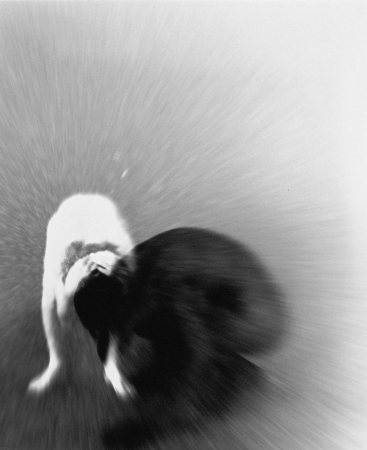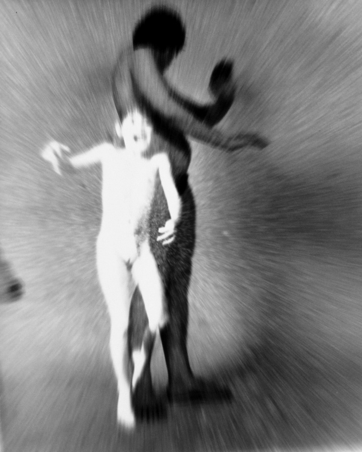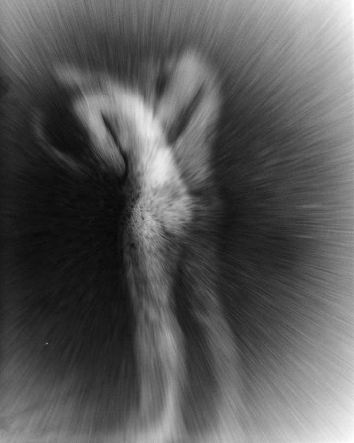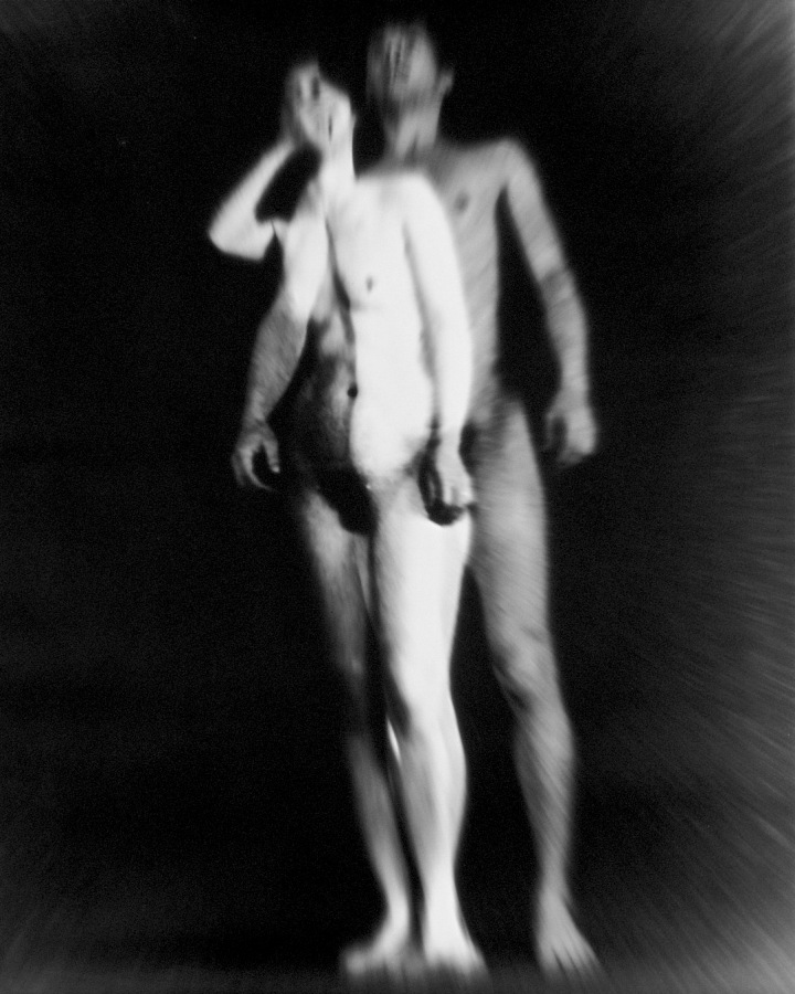 An der Universitaet fuer angewandte Kunst in Wien hoerten wir am 26. April 1986 ueber Radio von der Katastrophe im Kernkraftwerk von Tschernobyl. Zur selben Stunde waren meine Studenten bereit, Angst und Schrecken – nackt zu zeigen. Eine Studentin eilte heim um auch ihre beiden Kinder in das Projekt einzubinden. Um das Strahlen zu symbolisieren habe ich in die Ausarbeitung der klassischen Hasselblad-Negative vorsaetzlich auf vielfaeltige Weise manipulativ eingegriffen. Die letzten Bilder des Zyklus (teilweise von Bakterien zerstoert), vermitteln Veraschung und Versteinerung.