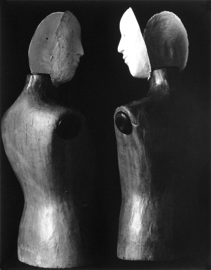 Im Rahmen ihres Projektes „Palme und Richtex: Der Molussische Torso“, wurde zu jedem der 100 Teilnehmer auf einen Tag dieselbe Schneiderpuppe gebracht. Ich stellte mir 3 Masken her, befestigte sie abwechselnd auf der Puppe und inszenierte durch Doppelbelichtungen die Atmosphaere eines Dialoges.