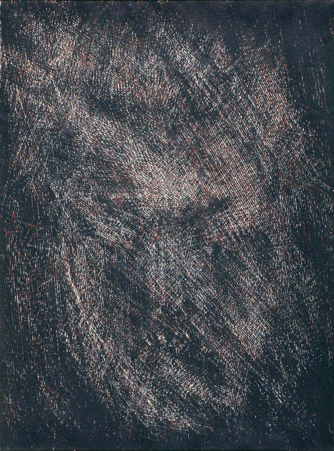 When in I was 50 and the dream reappeared, I decided to try to capture this vague, translucent, forever changing image. I thought I might get closest by applying xylography from the lost plate. All the images come from one woodblock, which I continually scratched with a veneer-saw, printing layer on layer in a rather intuitive manner. 1986, when I had stopped to work the cycle (it could have gone on and on), I felt calm and fine. A slight resemblance of the dream and its unknown dimensions was transformed into a physical matter.