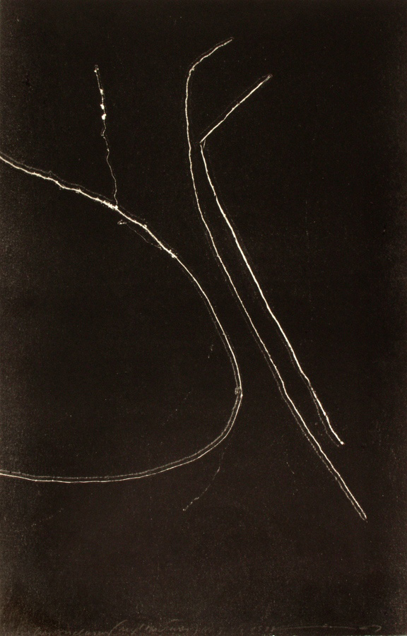 I picked up the fine, stiff, and worn surface roots of distant pine trees from the sandy beaches of S’Avall in Majorca. I carefully arranged the powerful “borrowed” gestures to recall fragments of roots guiding through the dark, and printed them with a transfer process onto paper. They form an autonomous part of “Homage to Wislawa Szymborska – Hortus Conclusus”.