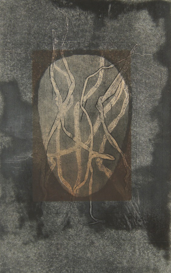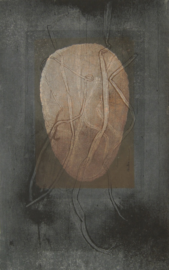 Print: Artist print on flatbed-press (oil colours and raisins)