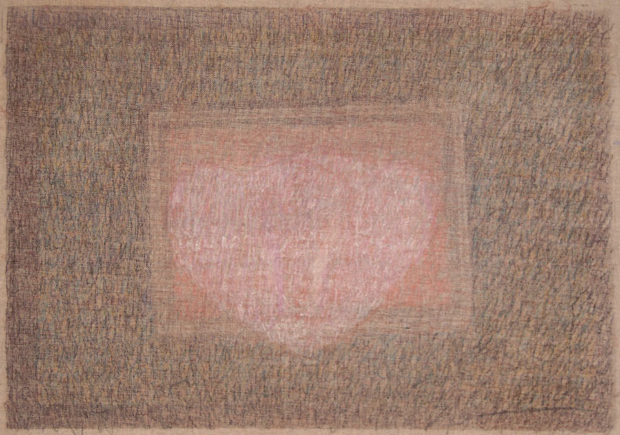 Hochdruck und 14 Schichten Schrift mit Buntstiften auf Leinen